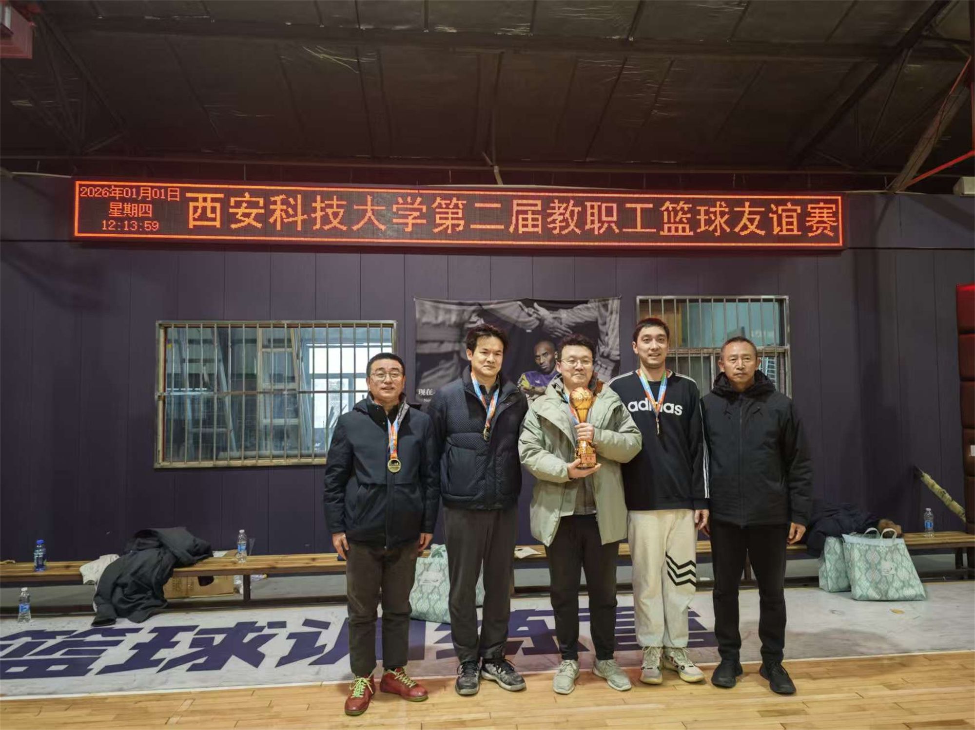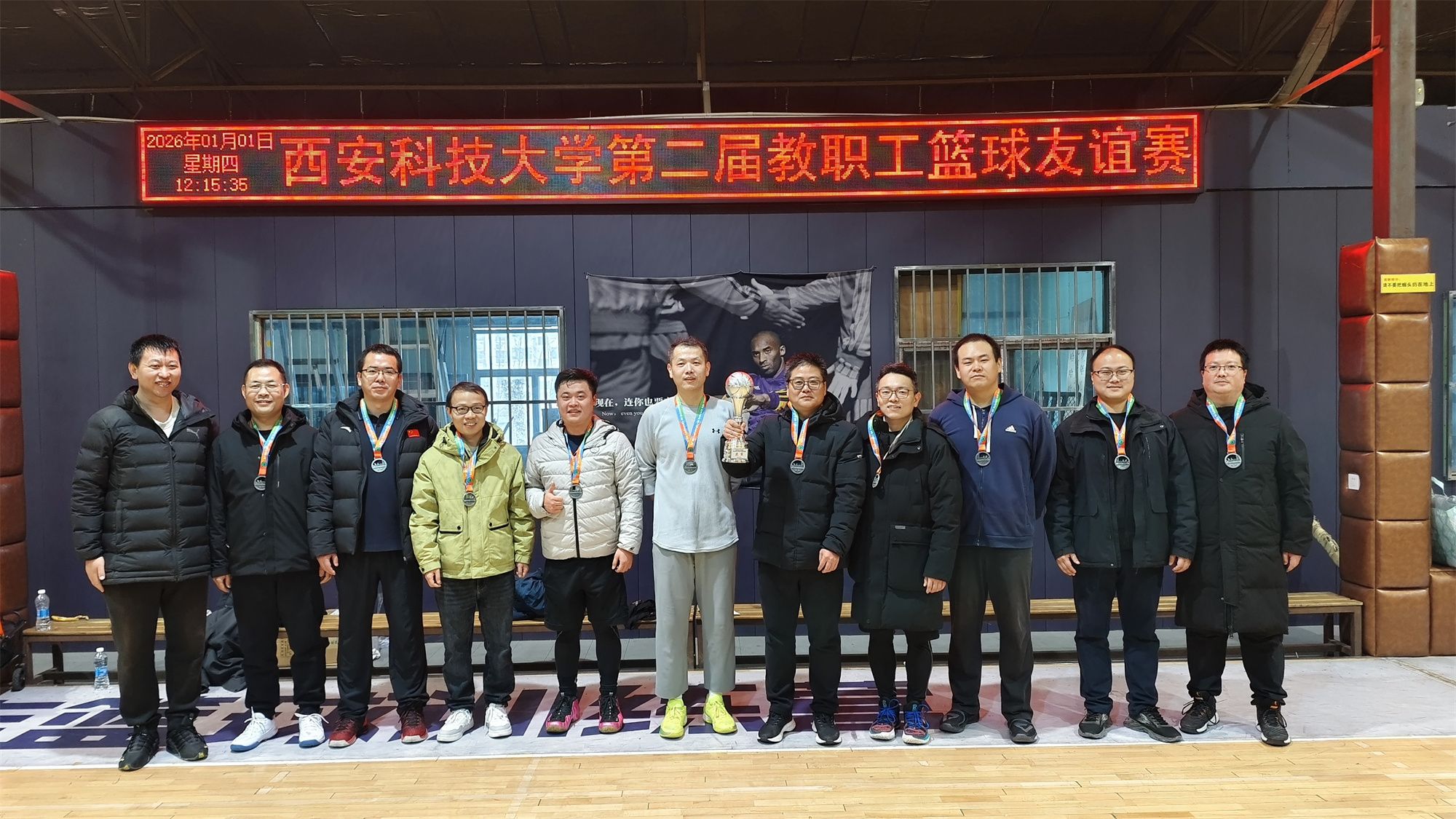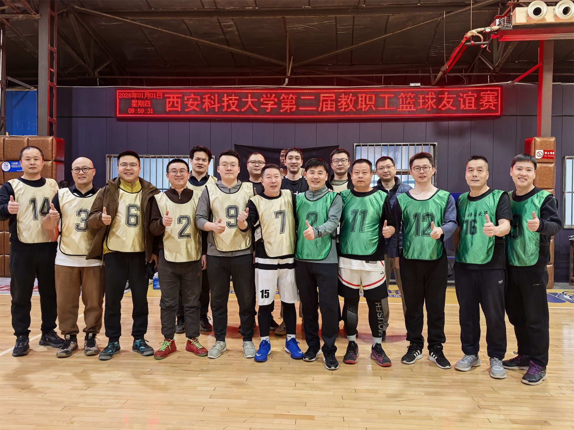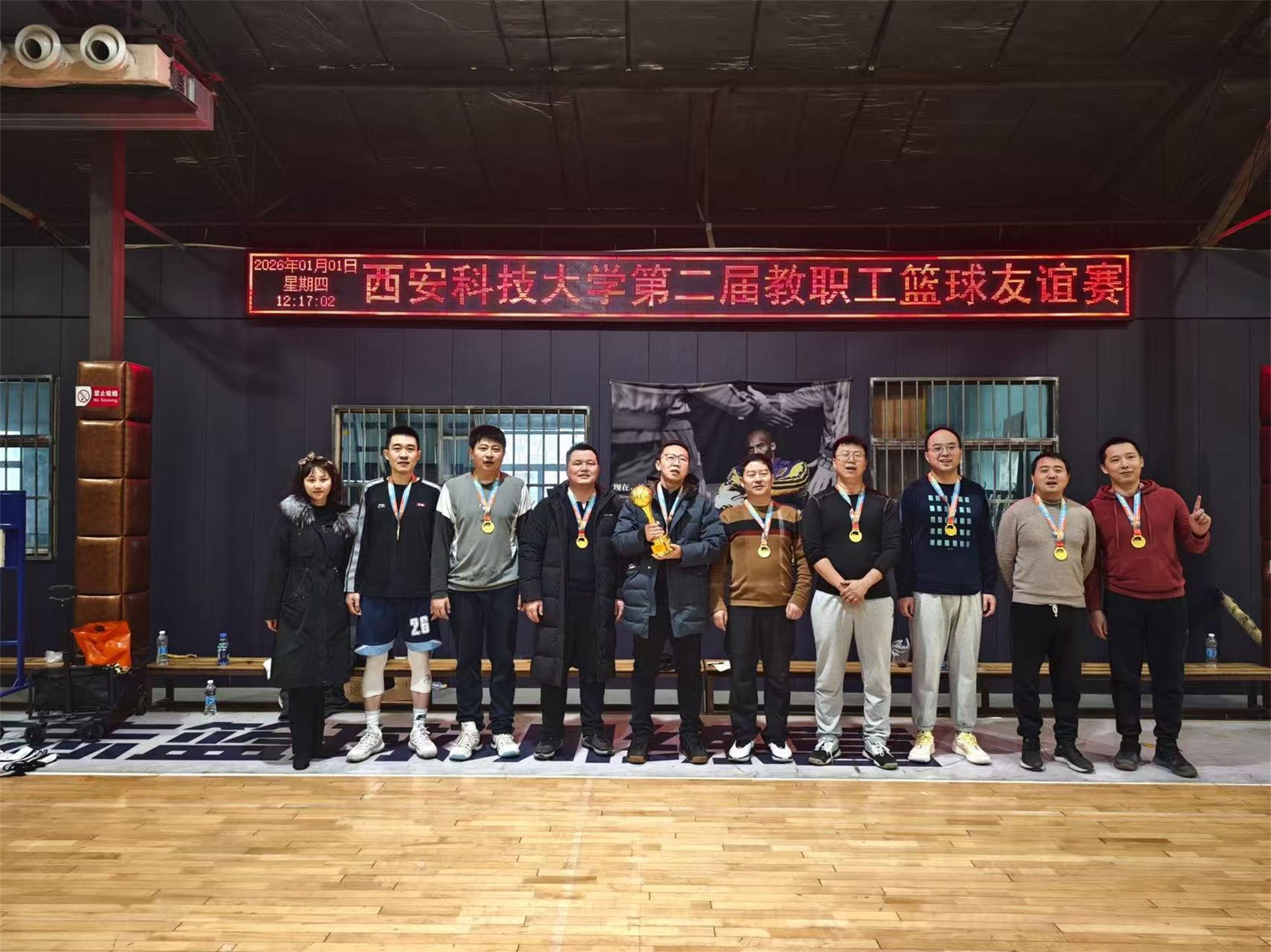 为丰富我校教职工文体生活,凝聚奋进力量,2026年1月1日上午,由校工会、体育部主办,校教职工篮球协会承办的西安科技大学“质启新程 奋进篮图”第二届教职工篮球友谊赛圆满举行。全校12支二级分工会代表队、百余名中青年教职工参赛角逐。