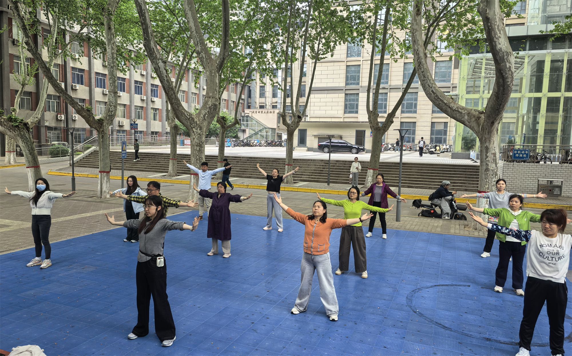 自校工会发布教职工团体健身操比赛通知以来,各分工会积极响应、迅速行动,党政负责人带头参与,利用业余时间精心编排、刻苦训练,规范梳理动作细节,强化团队协同配合,力求在赛场上展现西科教职工的卓越风采。