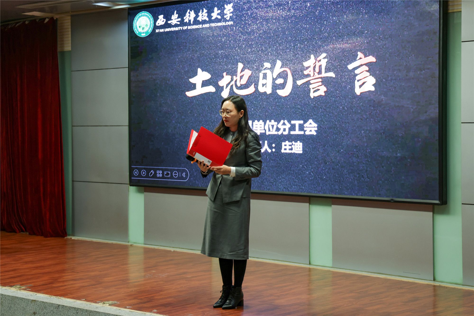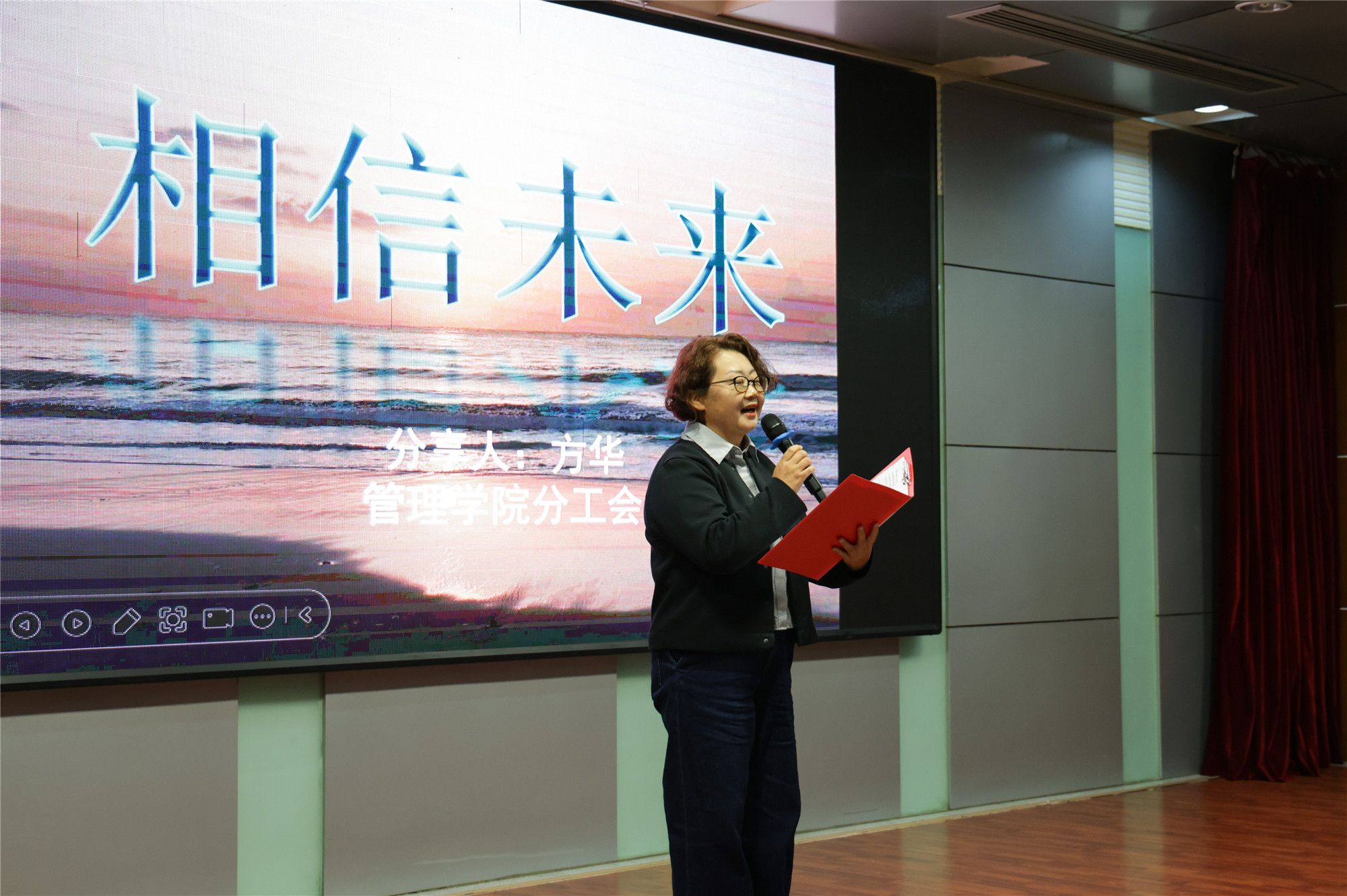 本次活动以“赓续校史文脉 书香涵养初心”为主题,紧扣学校百年发展历程,融合情景朗诵、单人诵读、校史宣讲、读书分享等多种形式,将校史传承、红色经典与时代精神有机结合,为在场师生呈现了一场兼具思想性、艺术性与感染力的文化盛宴。诵读会在红言宣讲团情景朗诵《时间的河》中拉开帷幕,声情并茂、意蕴悠长,生动诠释了“励志图存 自强不息”的学校精神;随后师生轮番登场,郭萌老师的诵读激昂澎湃,传递长征精神的时代力量;直属单位分工会庄迪老师深情演绎《土地的誓言》,抒发赤诚热烈的家国情怀与赤子初心;毛昕蓉老师的分享温情真挚,娓娓道来工会工作者的责任与坚守;郄晨曦同学的校史宣讲沉稳厚重,回望先辈办学报国之路;梅煜、方华两位老师的诵读或温婉绵长、或铿锵有力,传递执着与奋进的力量,代雨茜、李涵米两位同学的《共产党宣言》读书分享严谨深刻,将活动推向高潮。