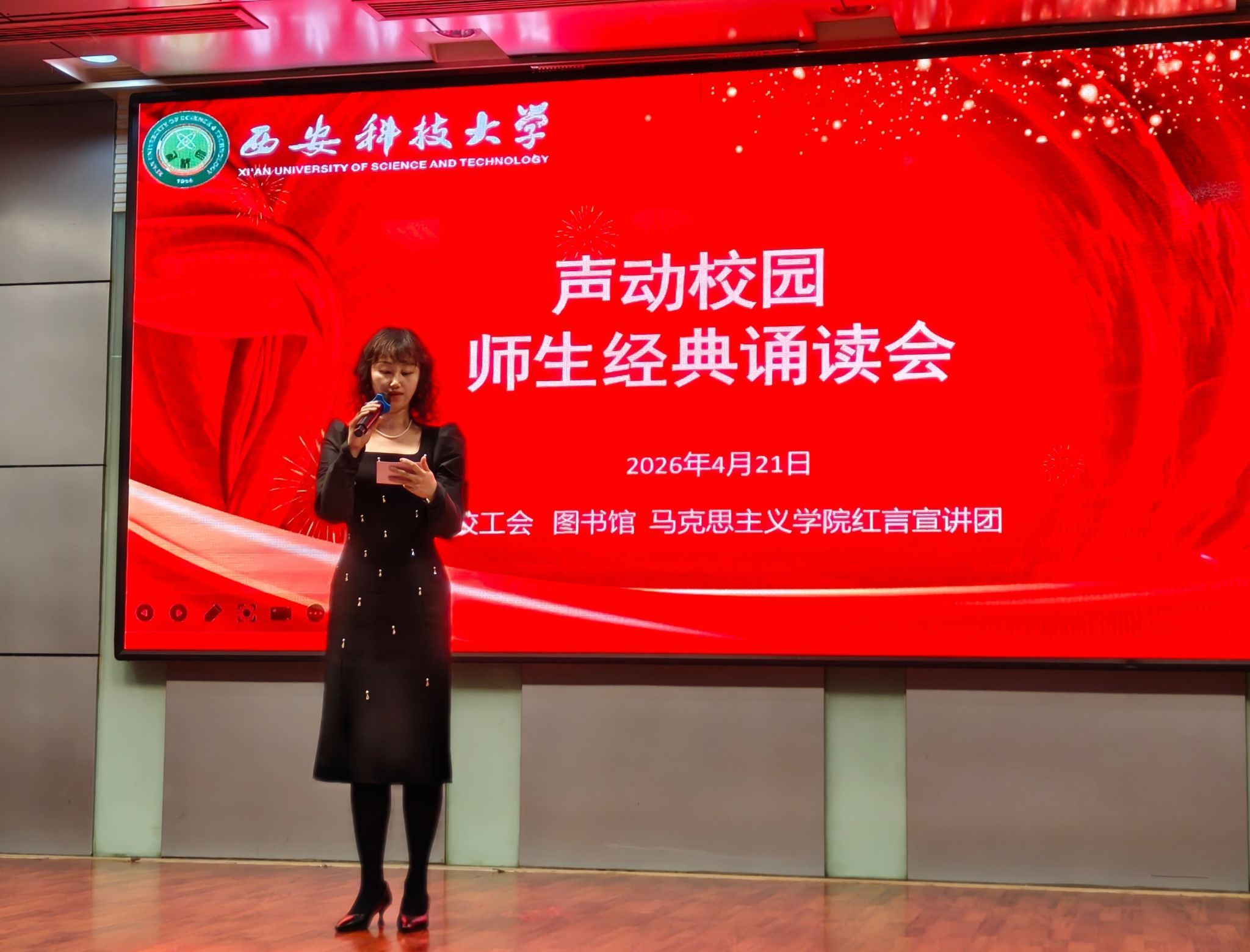 为进一步加强大学文化建设,深度传承红色基因、厚植校园文化底蕴,营造全民阅读、书香润校的良好氛围,4月21日,由校工会主办,马克思主义学院红言宣讲团、直属单位分工会协办的“声动校园”师生经典诵读会在骊山校园图书馆圆满落幕。校党委副书记黄英维出席活动,宣传部、统战部、学工部、团委、教务处负责人以及师生代表200余人参加活动。