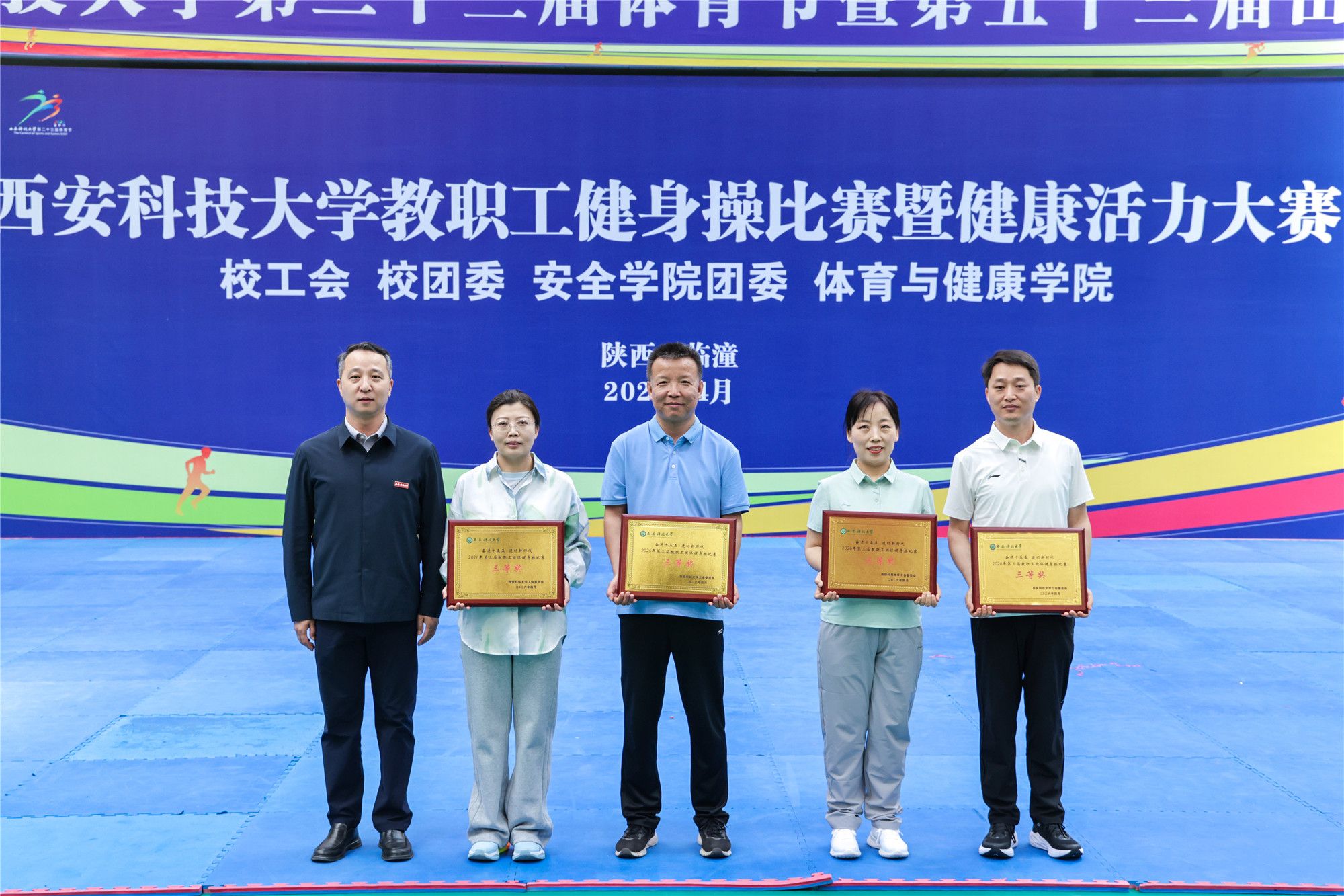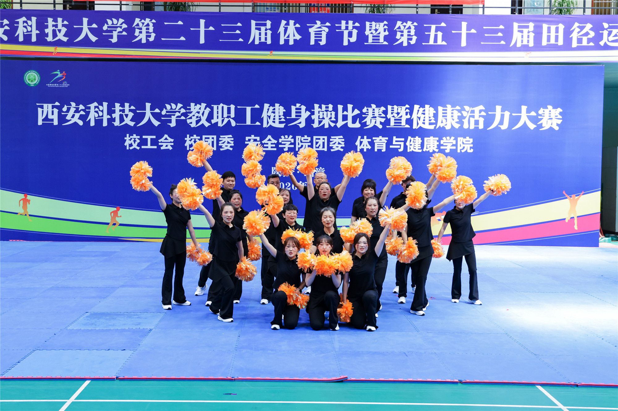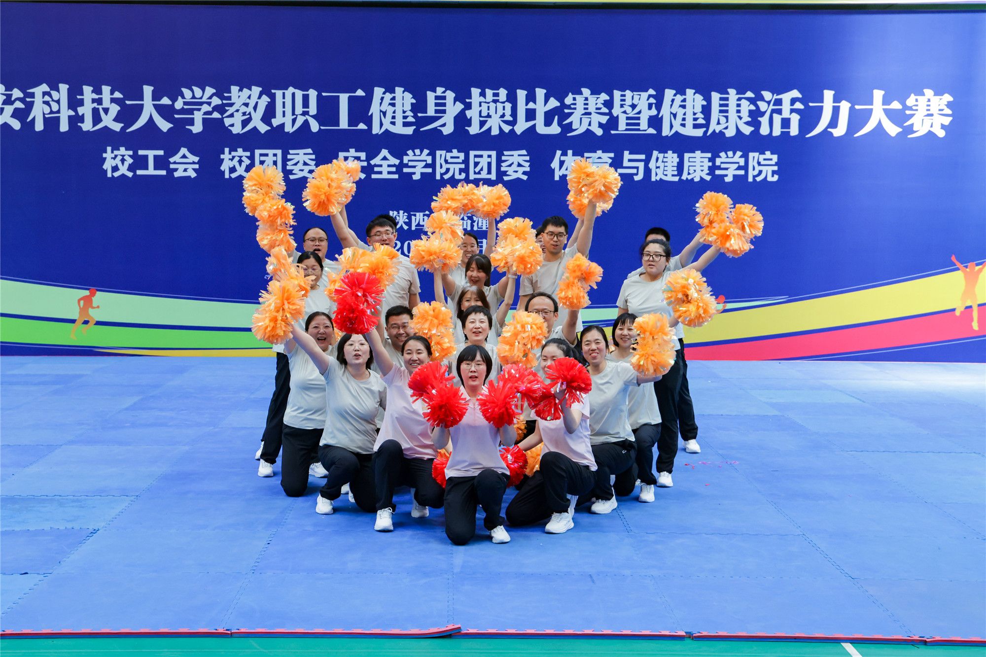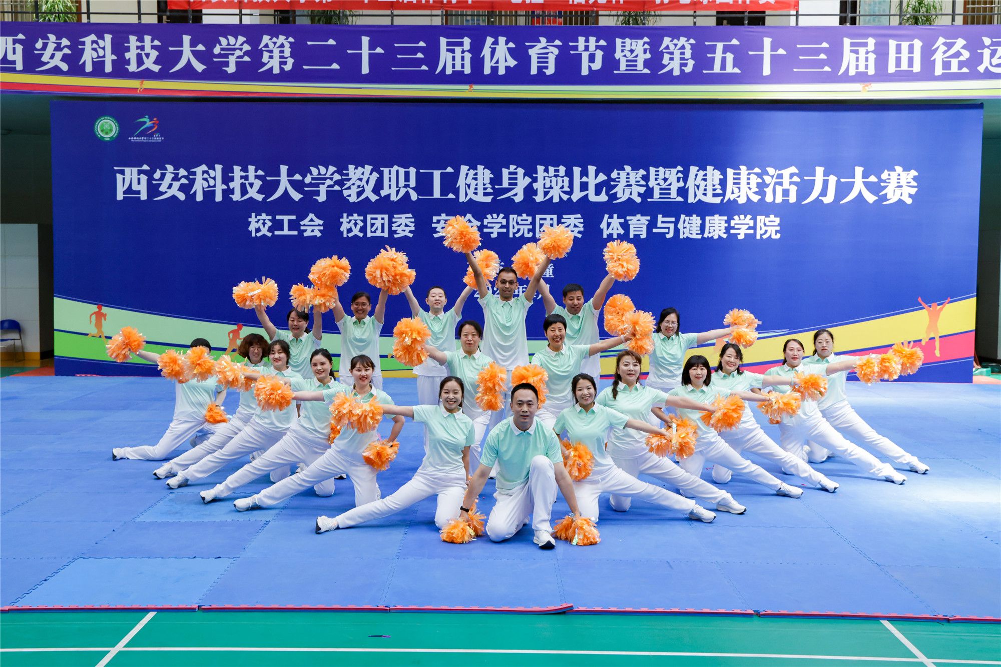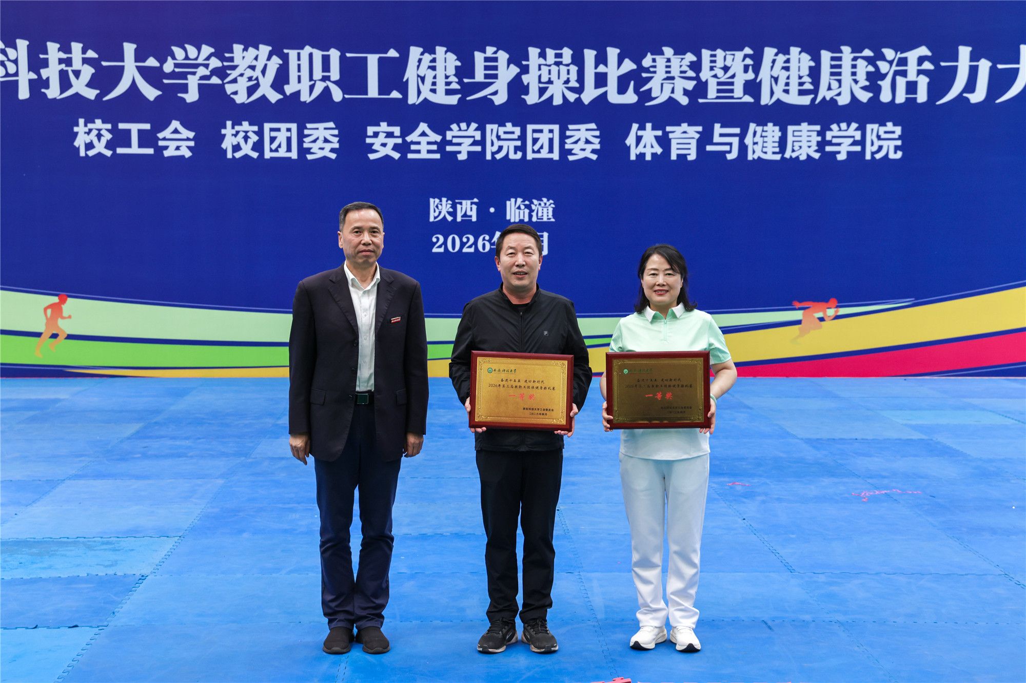 为深入实施全民健身战略,丰富校园文化生活,展现新时代教职工昂扬向上、团结奋进的精神风貌,4月23日,西安科技大学2026年第三届教职工团体健身操比赛在临潼校区骊山校园体育馆隆重举行。校党委书记来兴平,校长邓军,校党委副书记陈春林,校党委副书记、纪委书记、省纪委监委驻校纪检监察组组长沙德忠,副校长罗振敏出席活动。比赛由校工会主办,体育与健康学院协办,吸引全校20个分工会、430余名教职工踊跃参与,现场星光闪耀、气氛热烈高涨。