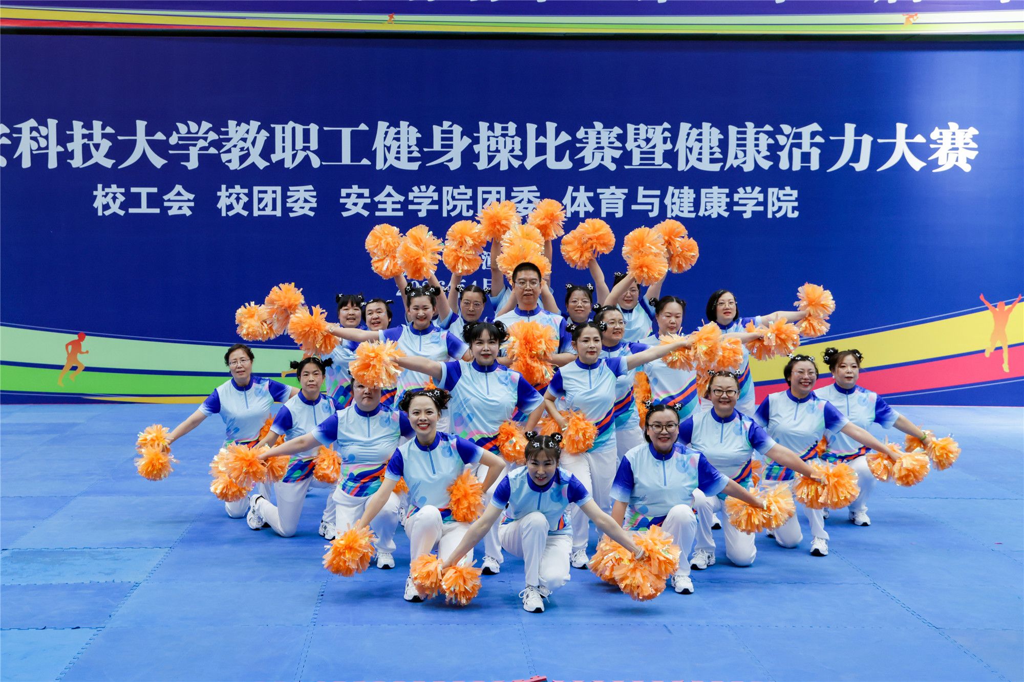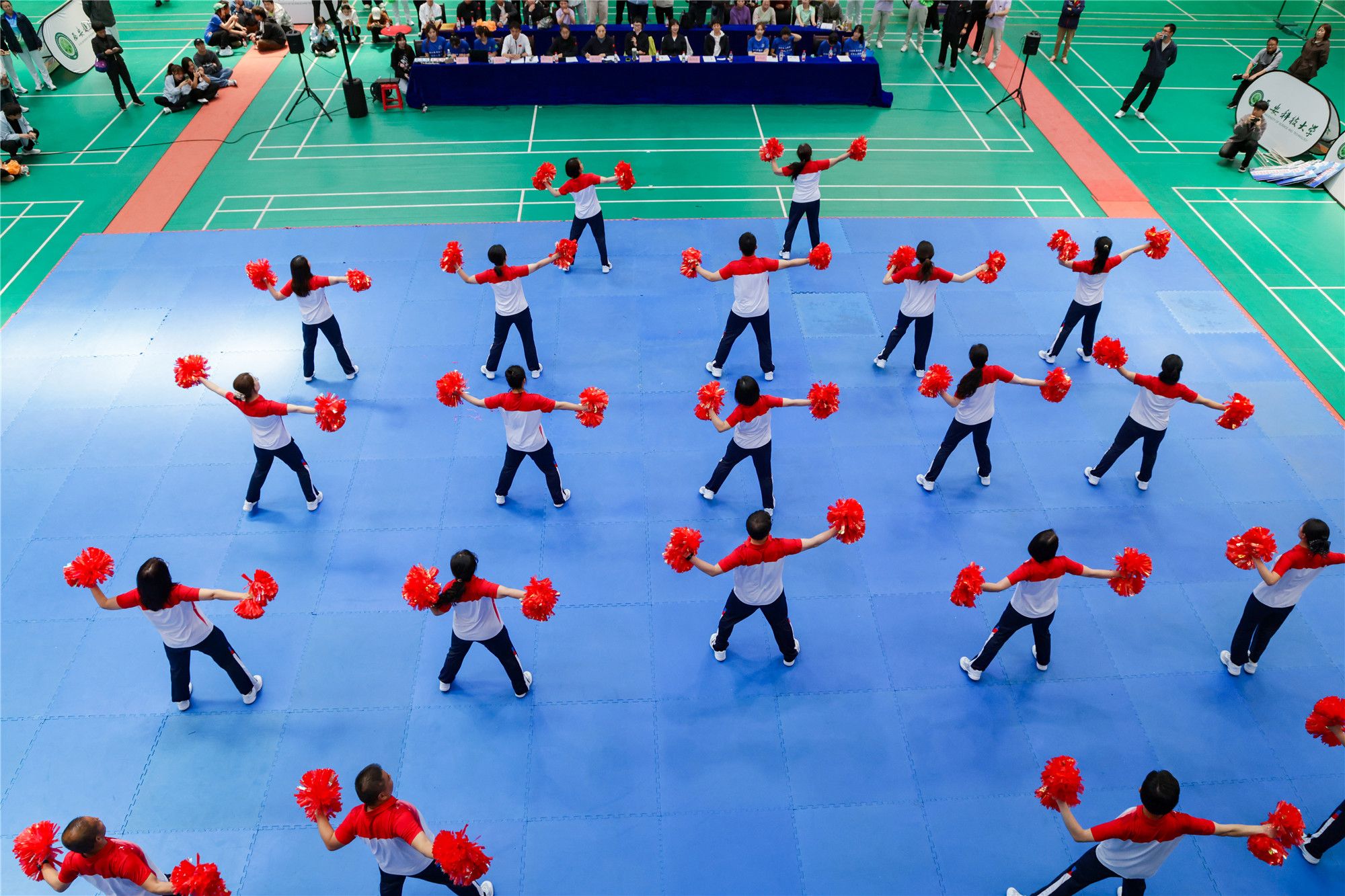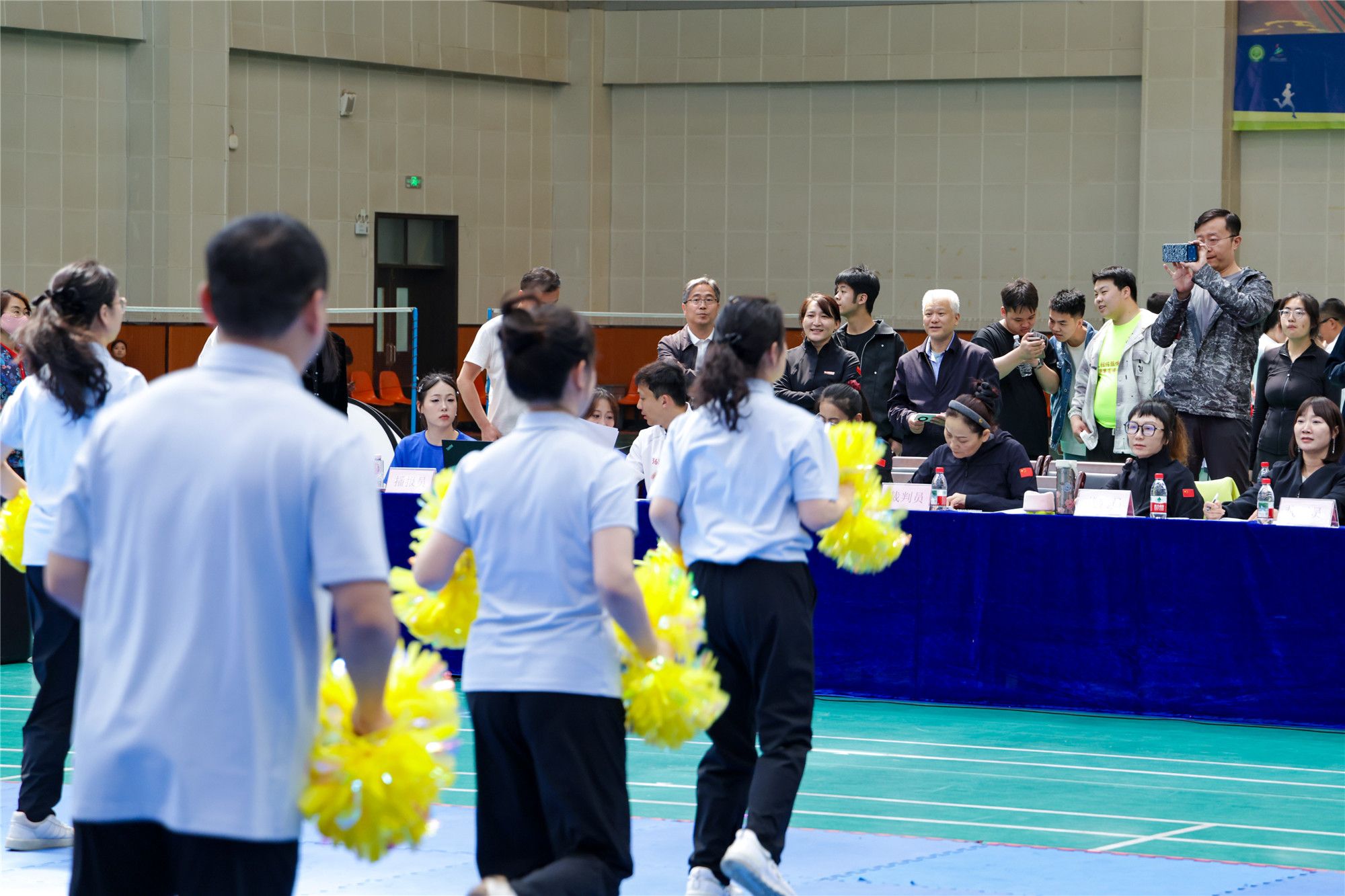 比赛当日,体育馆内灯光璀璨、舞台效果大气震撼。各代表队身着统一靓丽服装,精神抖擞、依次登场。伴着《站在星光璀璨的舞台》的激昂旋律,教职工们全情投入、活力绽放。相较往届,本届教职工整体表现力更为出色:动作舒展流畅、刚柔并济,跳跃轻盈有力,旋转连贯优美,队形变换精准有序、衔接自然;脸上洋溢自信笑容,眼神坚定明亮,将力与美、激情与默契完美融合,淋漓尽致诠释健身魅力与奋进姿态。赛场上,既有朝气蓬勃、活力四射的青年教工,也有身先士卒、神采奕奕的资深教授与党政干部,大家同心协力、奋勇争先,用汗水与风采书写团结拼搏的动人篇章。