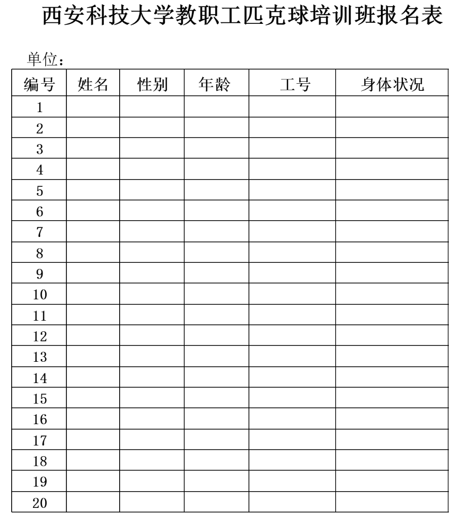西安科技大学教职工匹克球培训班报名表