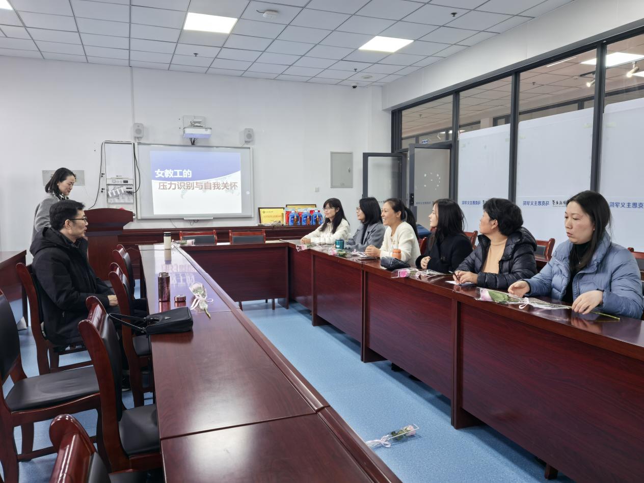 春回大地,万象更新!为庆祝第116个“三八”国际劳动妇女节。3月6日下午,学院女教工们欢聚一堂在骊山校园马克思主义学院会议室举办“凝聚她力量,奋进双一流”为主题的心理健康讲座,特邀王军妮教授授课,共同庆祝属于我们的节日。